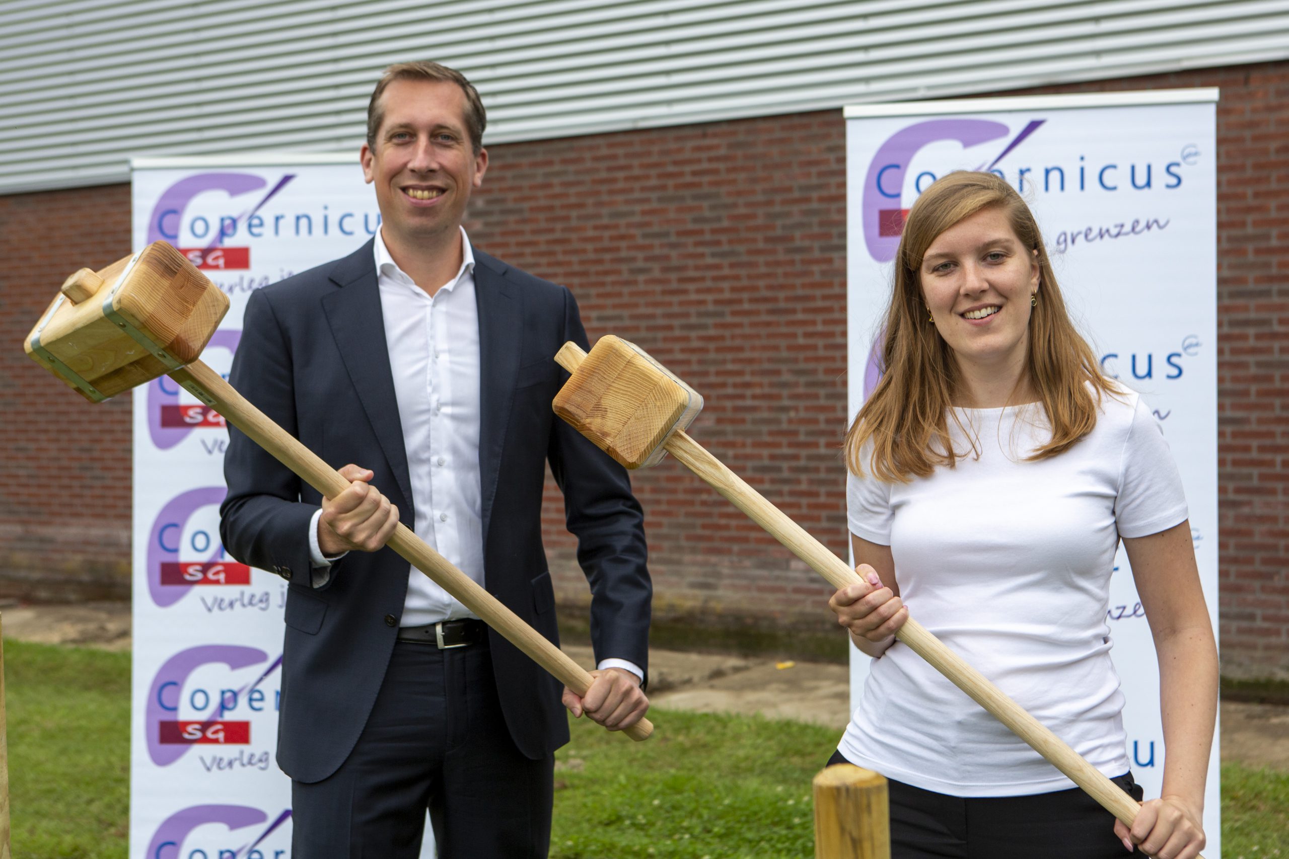 Met drie ferme klappen gaven sectieleider lichamelijke opvoeding Hedzer Nijholt en twee leerlingen van de sportklas van Copernicus het startsein van de bouw van een nieuwe, modern ingerichte sporthal. Een belangrijk moment volgens Pol Hinke, directeur van de Copernicus SG aan de Nieuwe Steen in Hoorn: “Als school waar sport een belangrijk aandeel in het aanbod vormt, zijn we erg blij met de uitbreiding en modernisering van onze faciliteiten. We gaan van drie naar vier zalen en dat biedt vele mogelijkheden voor onze speciale sportklassen, algemene lessen en alle leerlingen.’